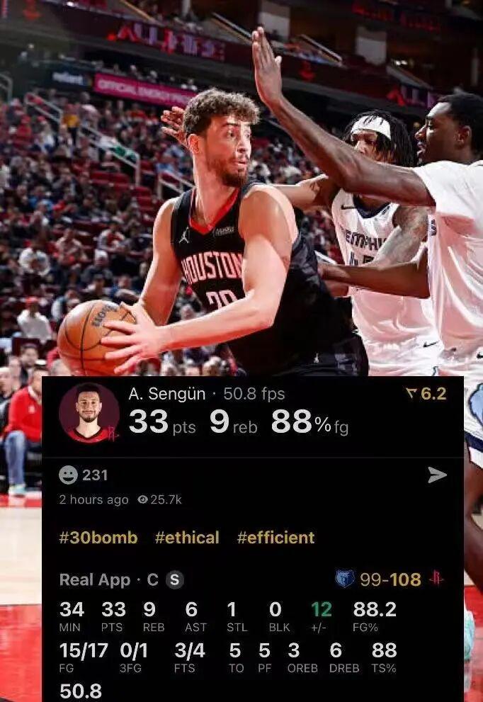 火箭双杀灰熊,三核都打出了漂亮的数据