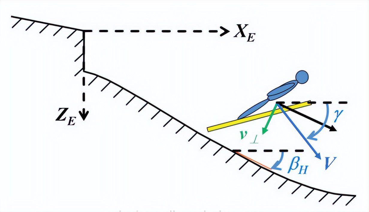 当运动员接触坡面时,物理学的“力的分解”开始发挥作用,真正的挑战不在于速度本身,而在于垂直于坡面的那部分速度——也就是着陆速度: